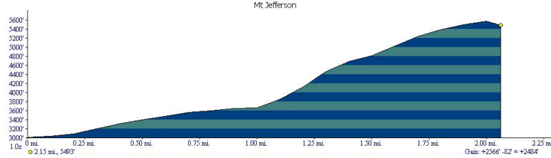 The Caps Ridge Trail up Jefferson is short, 2.5 miles, but steep. The trail takes you over three Caps - rocky, very steep ledges that require hand-over-hand scrambling, praying for hand and footholds as you crawl up the rock face. We don't bring Dejah. She doesn't like ledges. Of course, neither do I. Pat loves them!