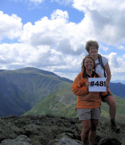 One of the women on top mentions Chuck Roast in Conway has 4,000-footer T-shirts with the mountains listed on the back. Wowserinoes. That sounds cool...